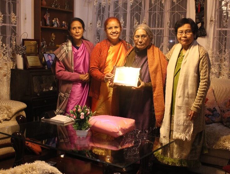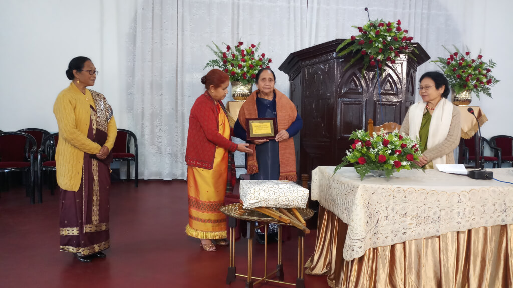 The celebration was inspiring and memorable, opening with the raising of the Seng Kynthei flag in the compound of the Jowai Church by the Vice President, Kong Dorismoom Mylliemngap. Then participants gathered in the church, with strict adherence to the COVID-19 protocols. Two stalwarts of the organization, Kong Newyorksila Nongbri, Founding President, and Kong Moltiferra Rani, Founding Secretary, were honored for their achievements and for the recording of the history of the re-organization of the Seng Kynthei.